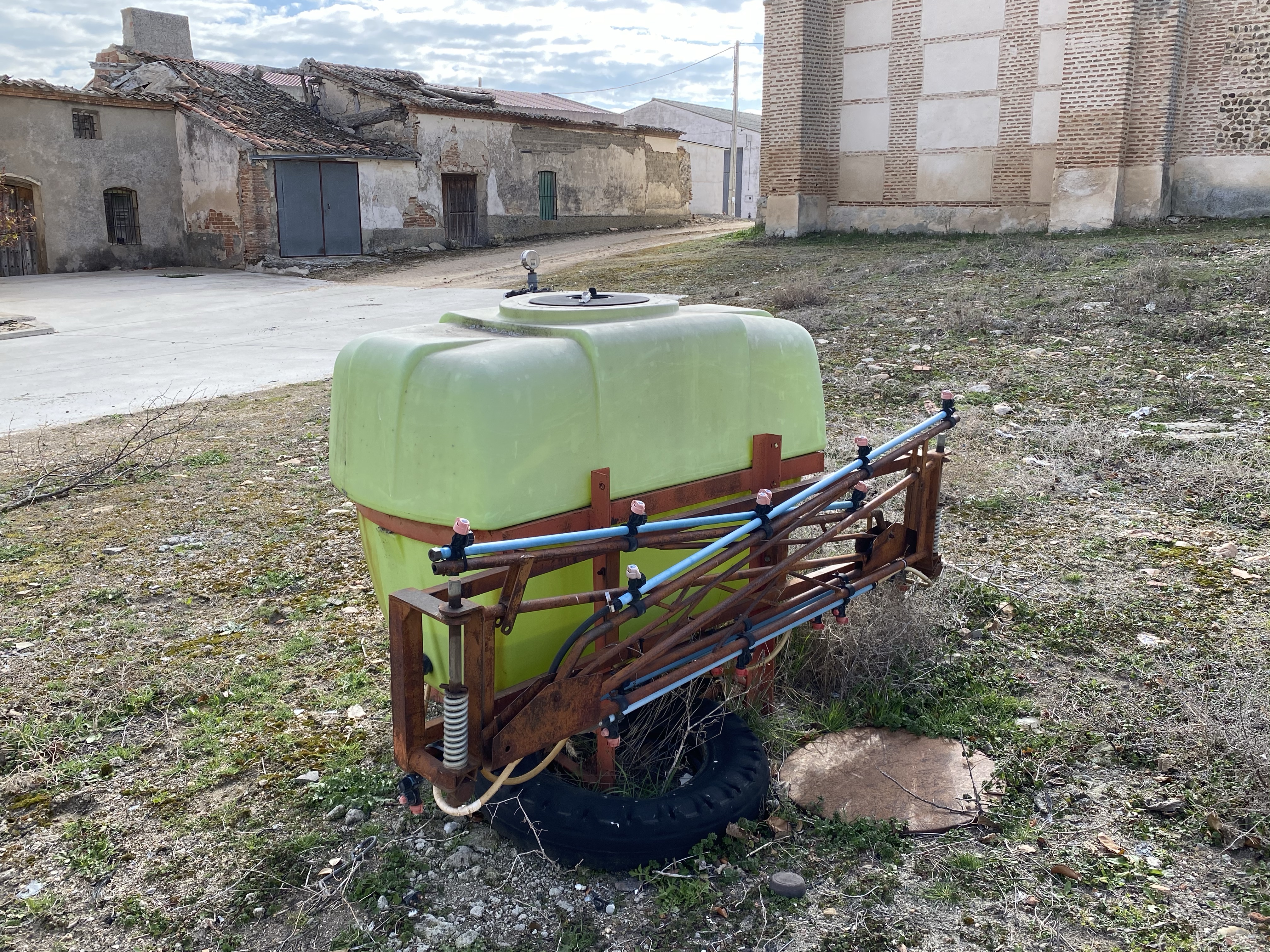 Detalles del Caserío: maquinaria, escuelas, transformador y maquinaria agrícola en Bernuy de Coca. Segovia. Castilla y León.