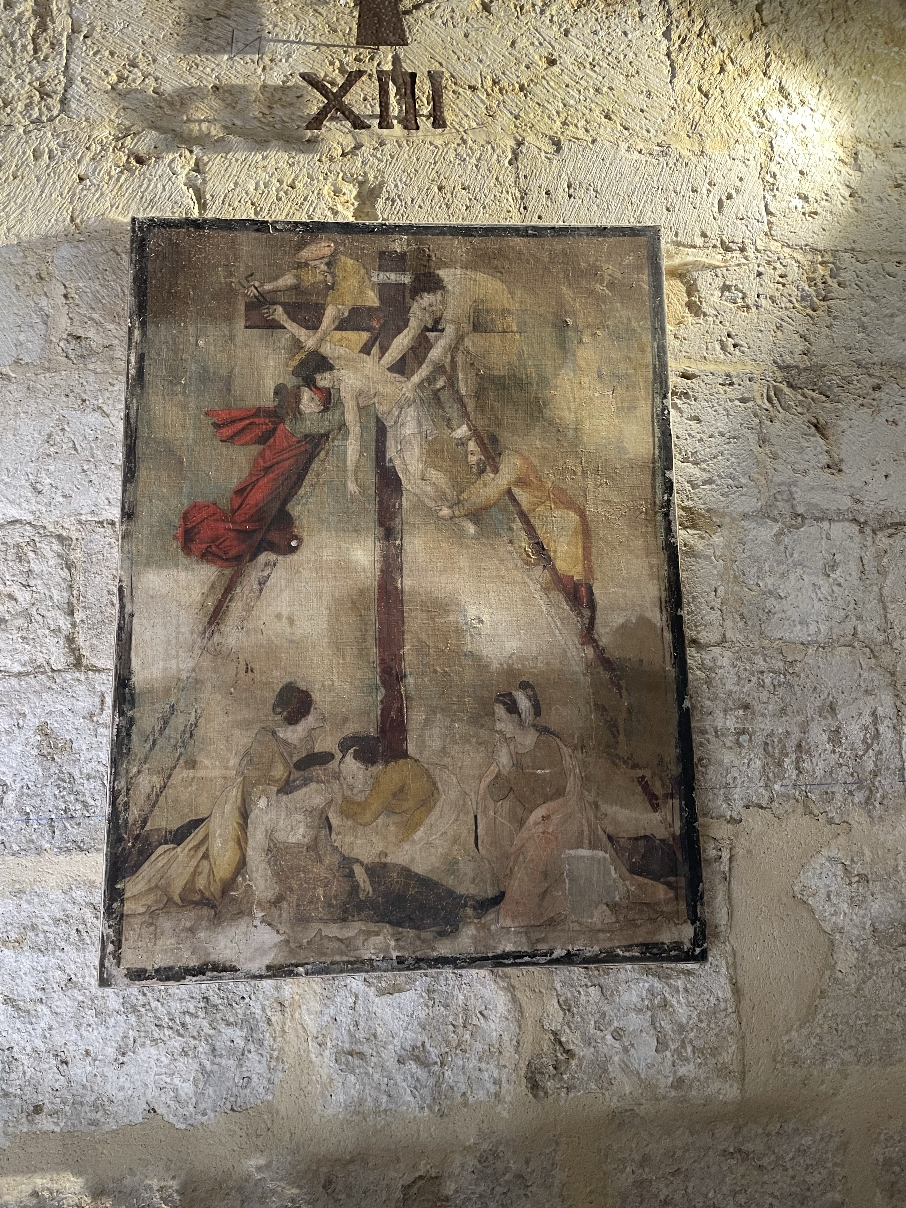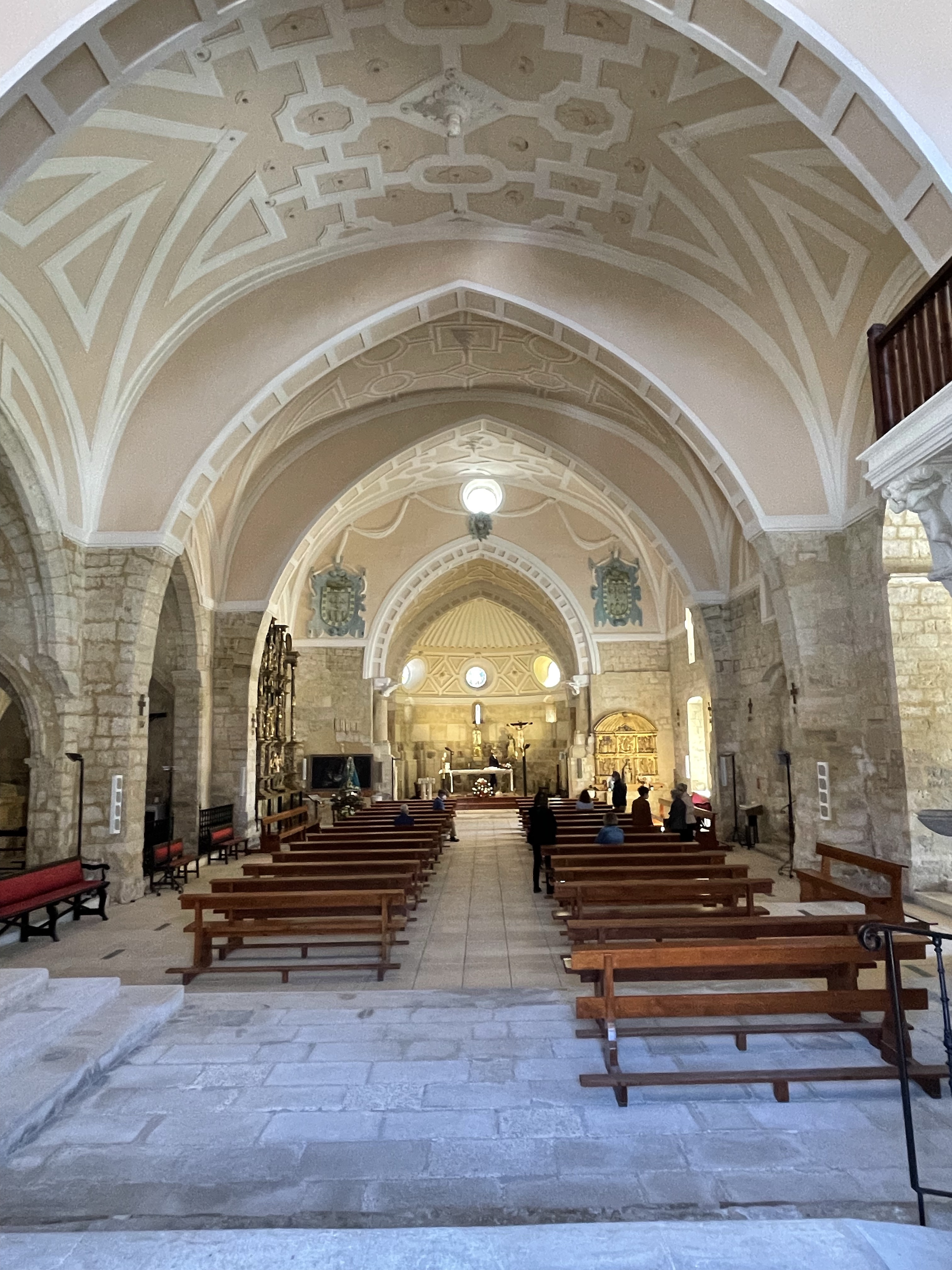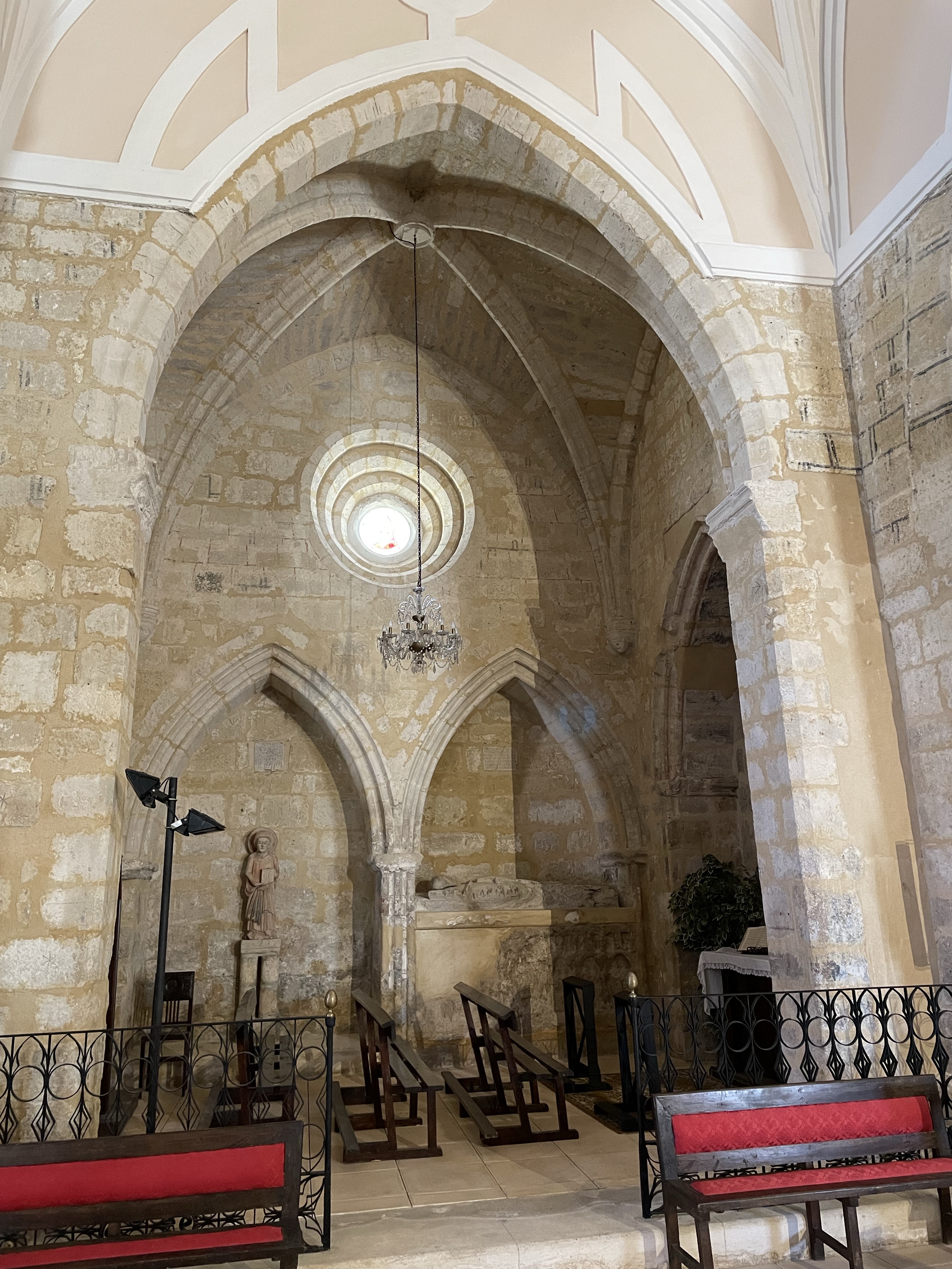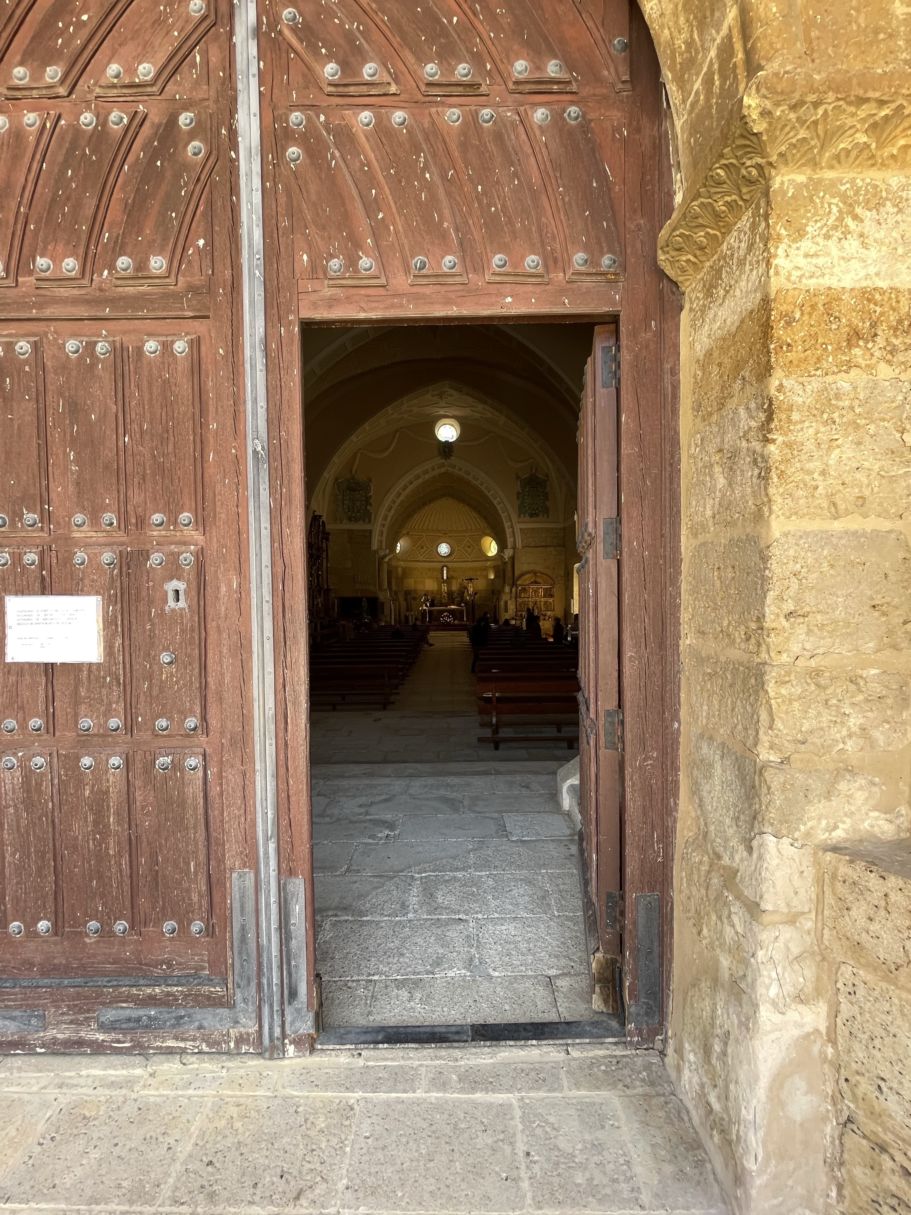 Pila bautismal, inscripciones y otros detalles en Iglesia Gótica s.X Santa Maria Husillos. Palencia. Castilla y León. 2022.05.02