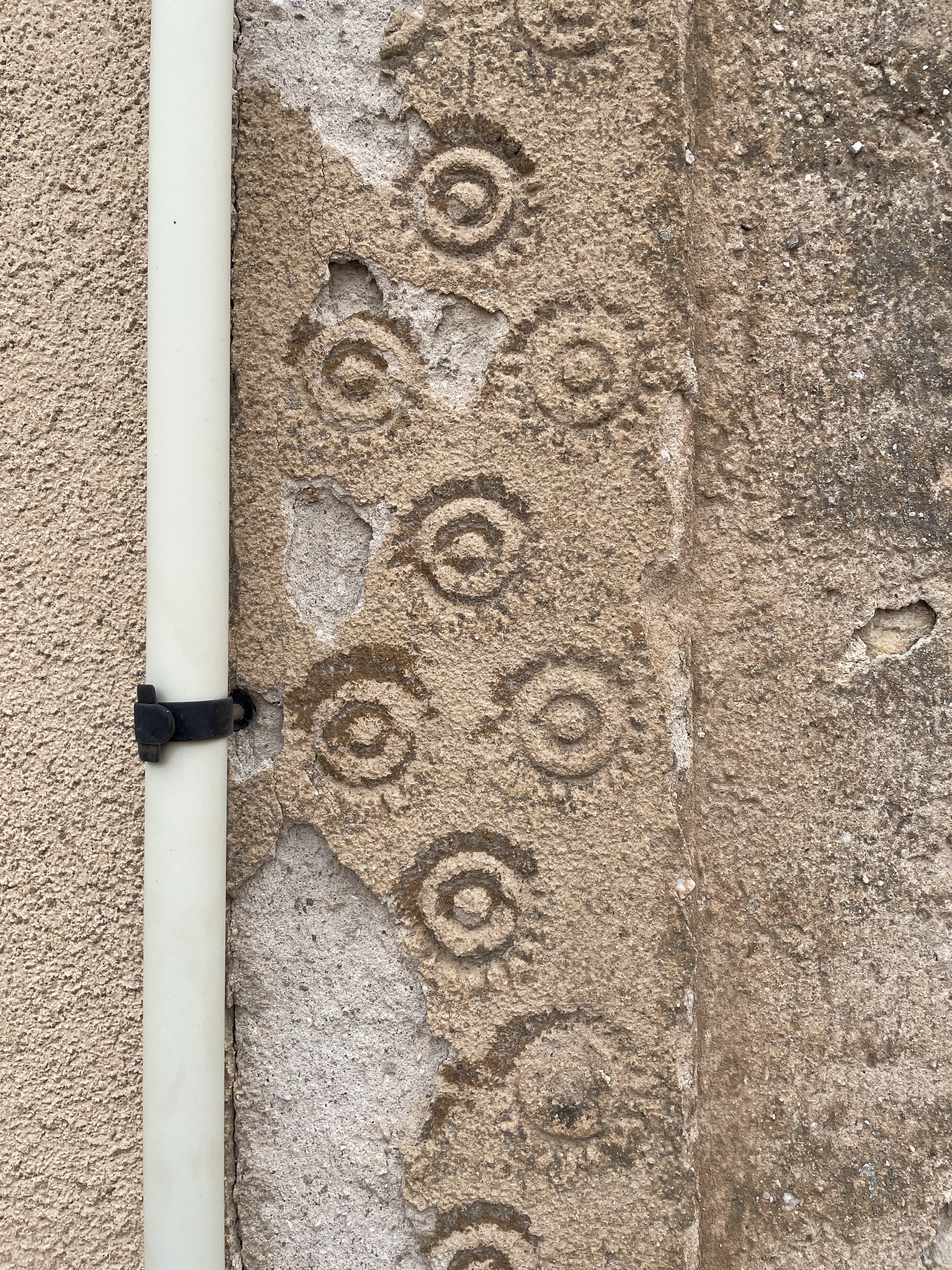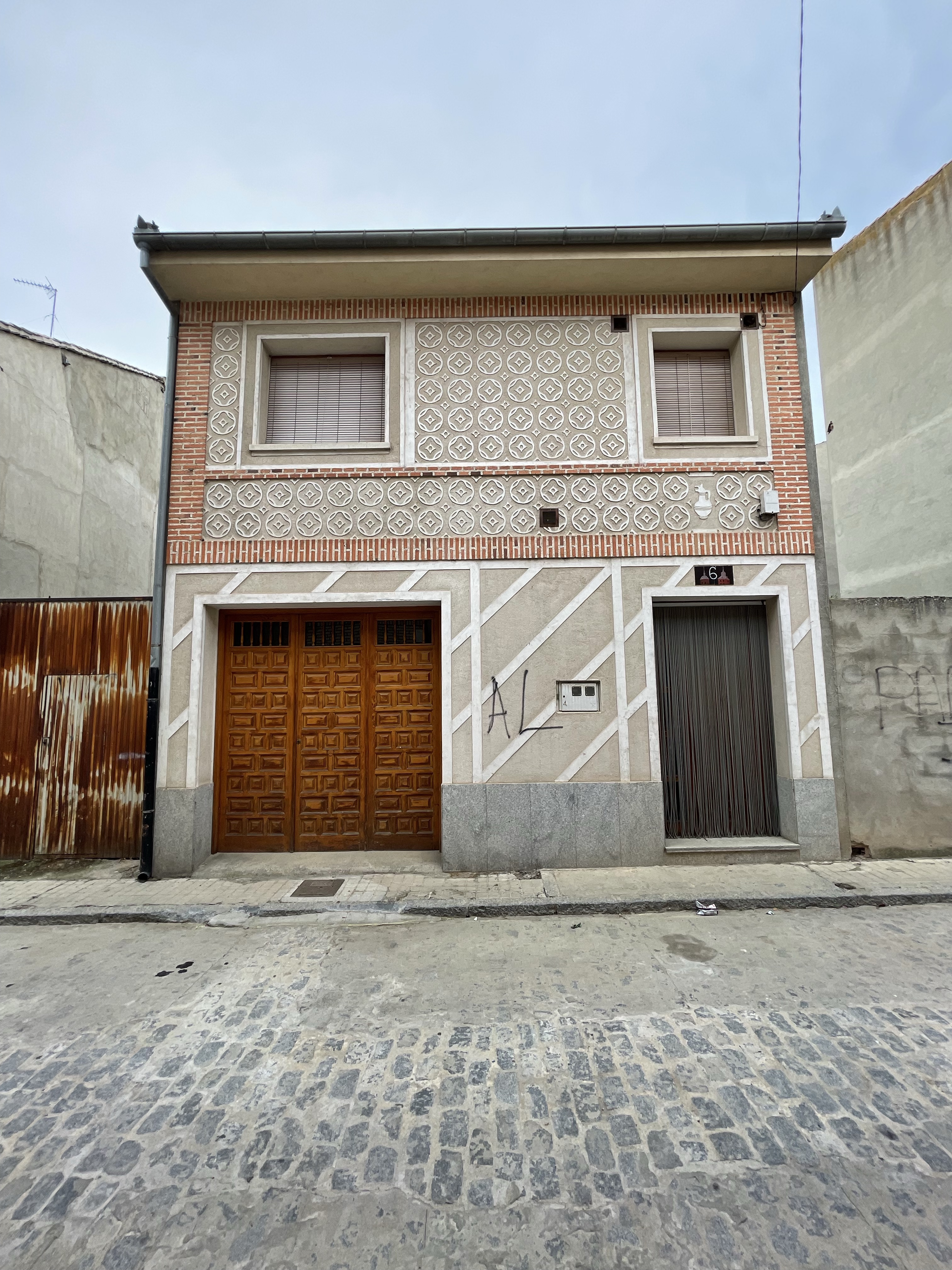 Ayuntamiento, Iglesia, Palacio, Detalle de Esgrafiados y Anuncio en Carbonero el Mayor. Segovia. Castilla y León. 14.5.2022